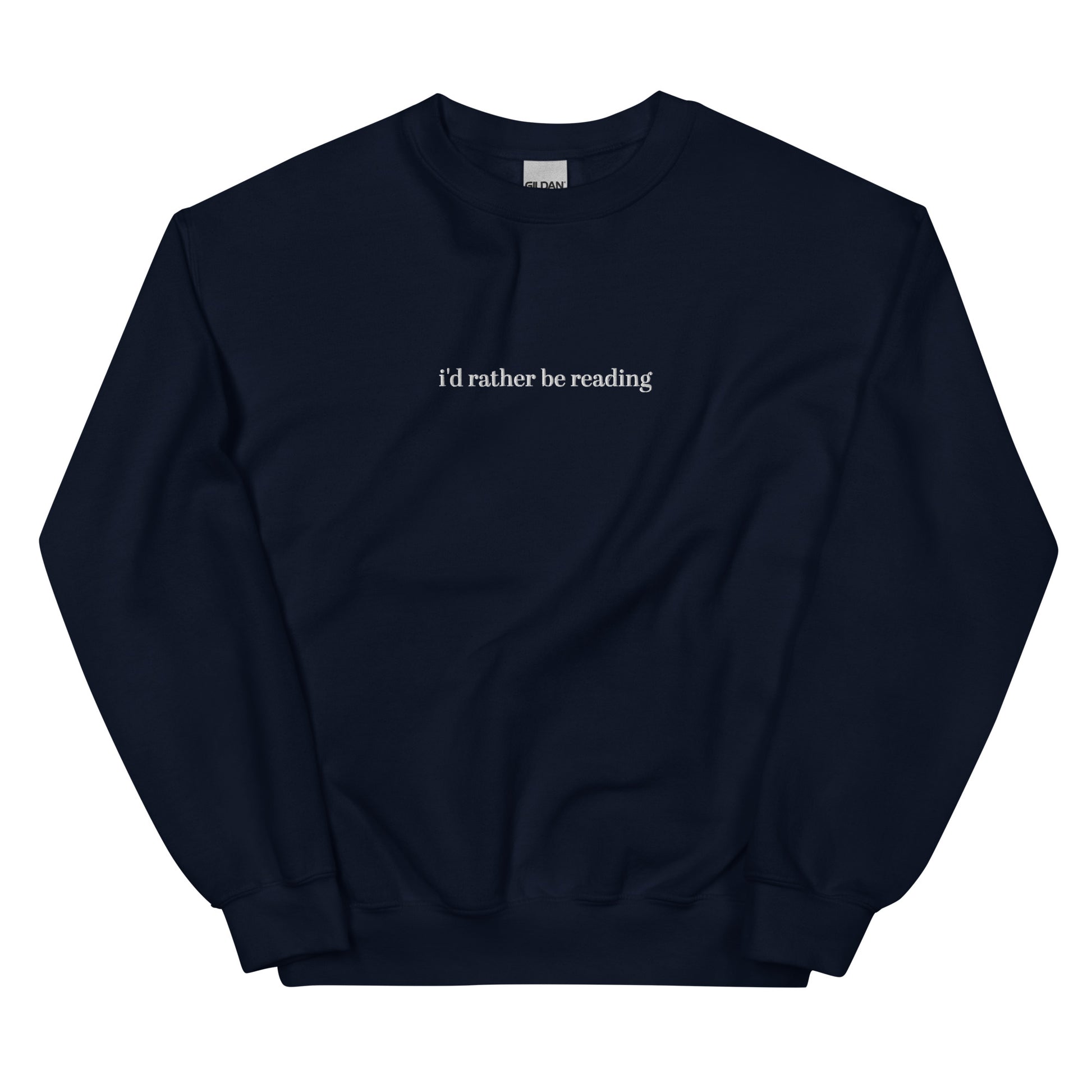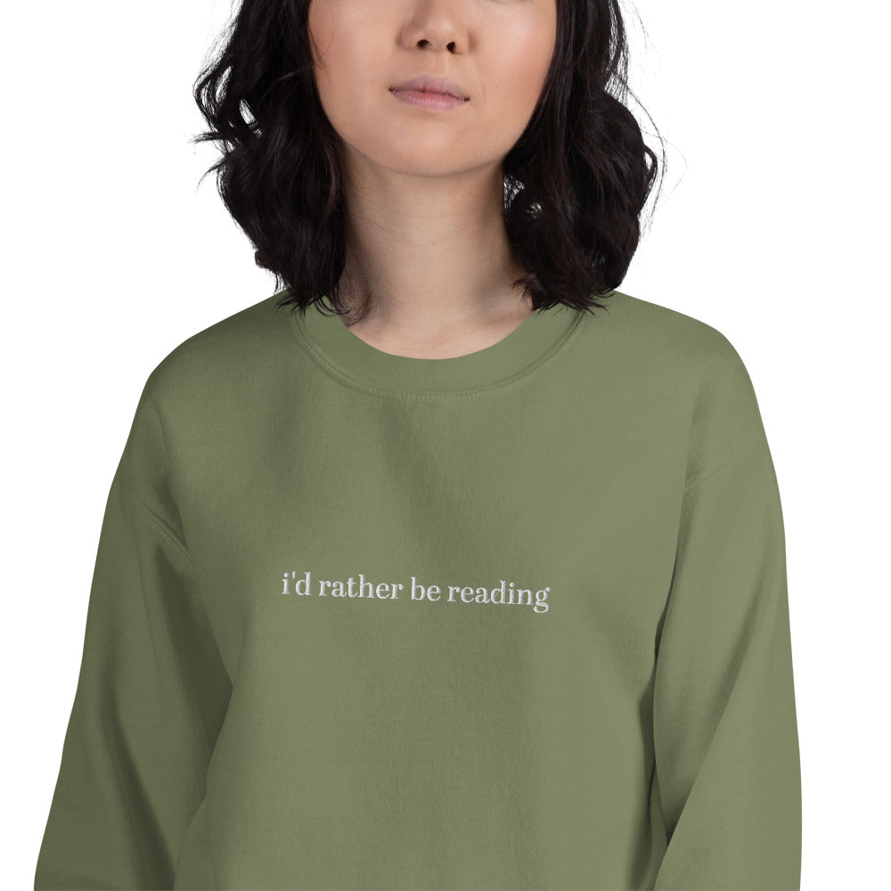 I'd Rather Be Reading, Embroidered Crewneck Sweatshirt